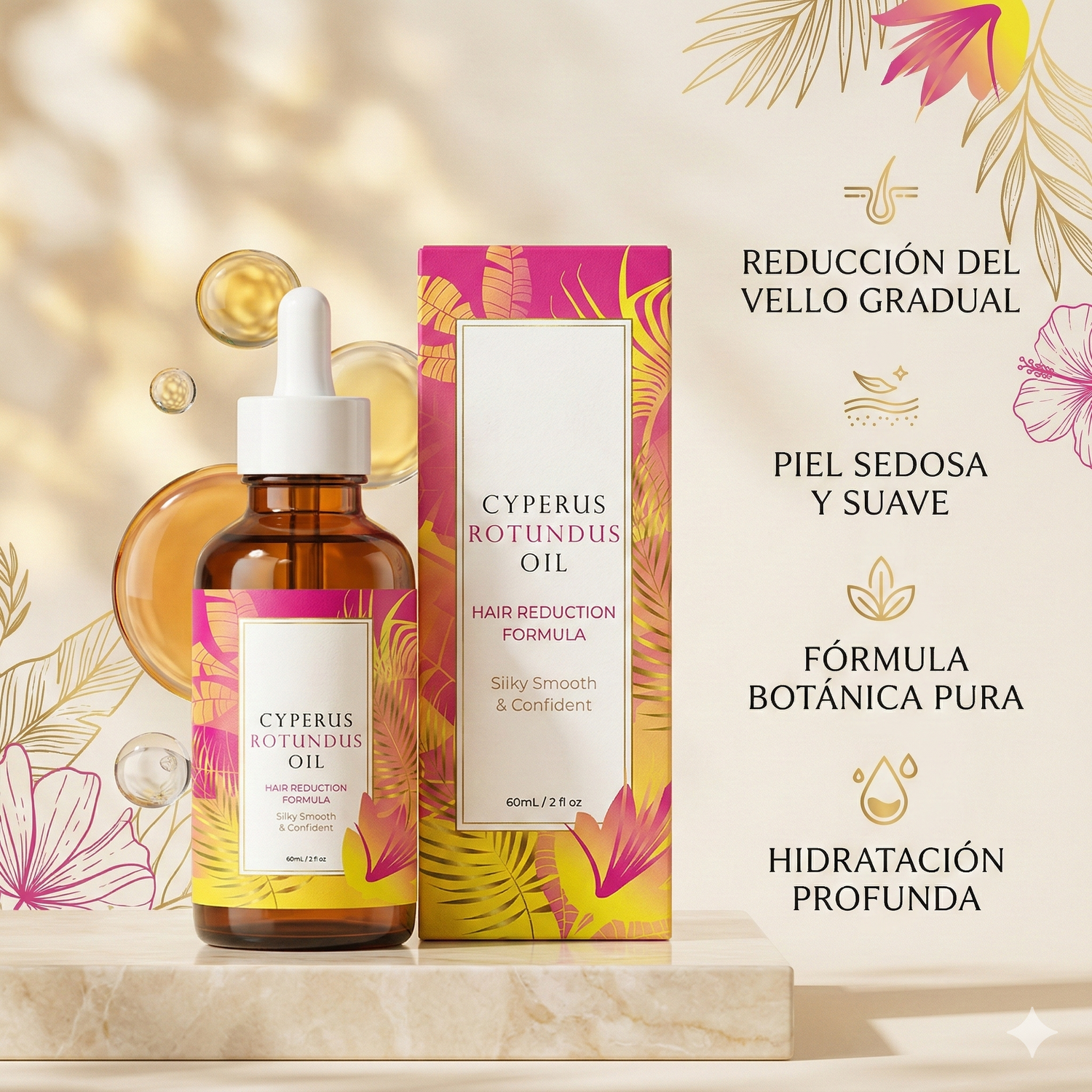El Cyperus Rotundus actúa de forma acumulativa. Sigue este proceso para debilitar el folículo desde la raíz y espaciar tus depilaciones.